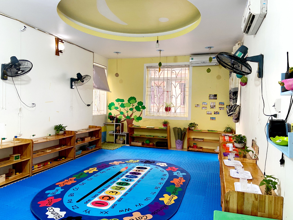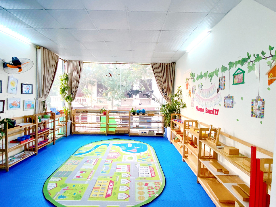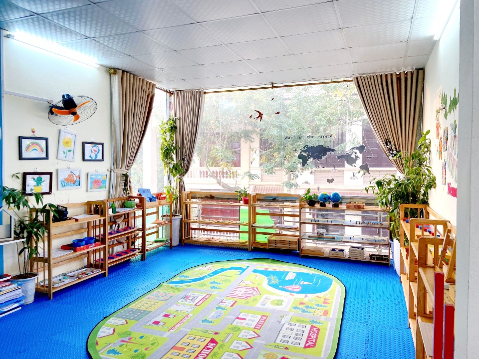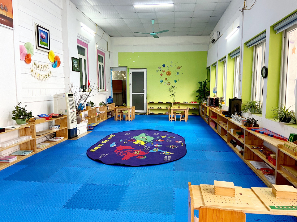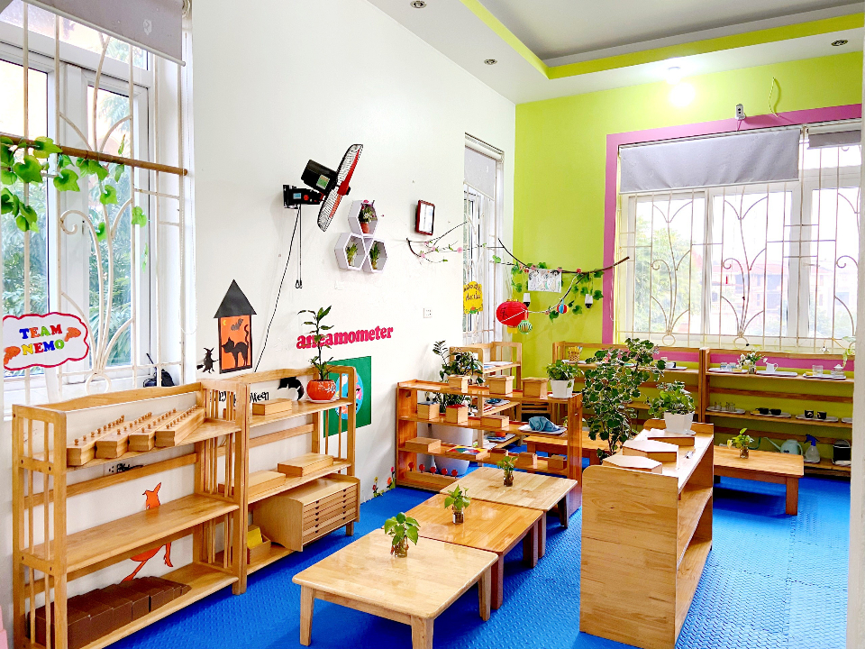 Trường mầm non Montessori Vĩnh Yên tổng cộng phòng học 8 phòng, diện tích phòng học từ 30 - 50m2, giáo cụ học tập đa dạng theo phương pháp giáo dục sớm Montessori.